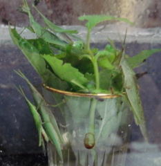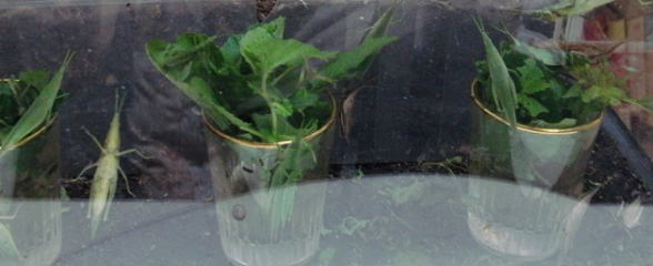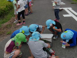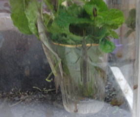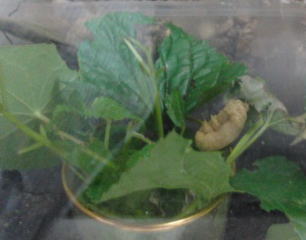 にわ の しょくぶつ の は が、たべられているの を はっけん。
