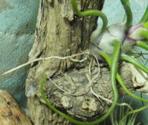 木の曲がりに置いておいたのですが、根がどんどん気に巻き付いてます