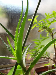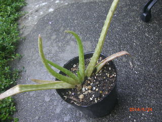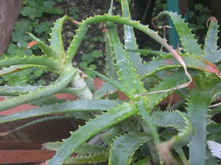 アロエ類は、冬に弱いので、家の中に入れたのですが、葉が、グッタリしたのが、出てきました