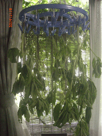 ドライを作ろうと、本にこんな乾燥法もあると載っていたので、やってみましたが、バジルは葉が厚いせいか、うまくいきません