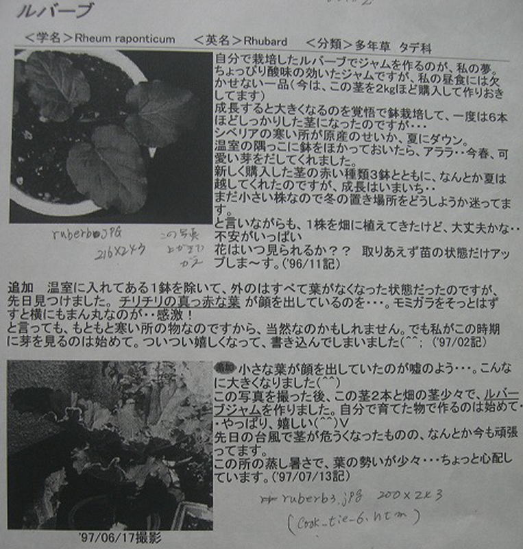 これは、昔、ベランダで育てたのだと思います。 苗のうちは良いのですが、茎を取るころになると、写真のごとくです。 けっこう手をやいたハーブですが、ジャム欲しさに大健闘していた思い出があります。 花の写真が見られないのが残念 もう、今の体では、栽培は無理なようです。