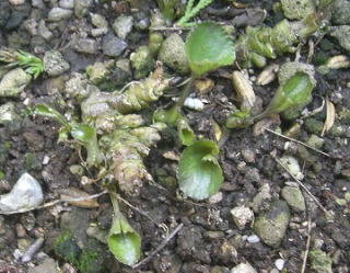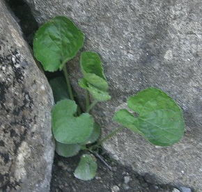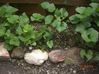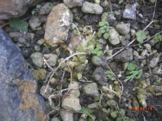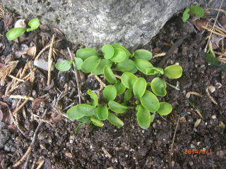 | 雑草が生えていますが、真ん中の太い根丸出しで、冬を越します。 | 根から直接新芽を出しているもの |