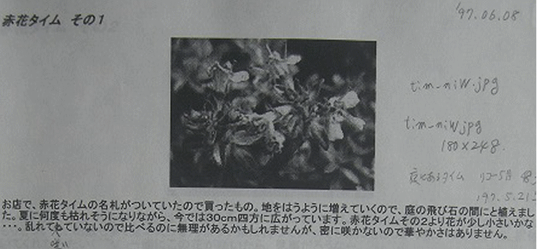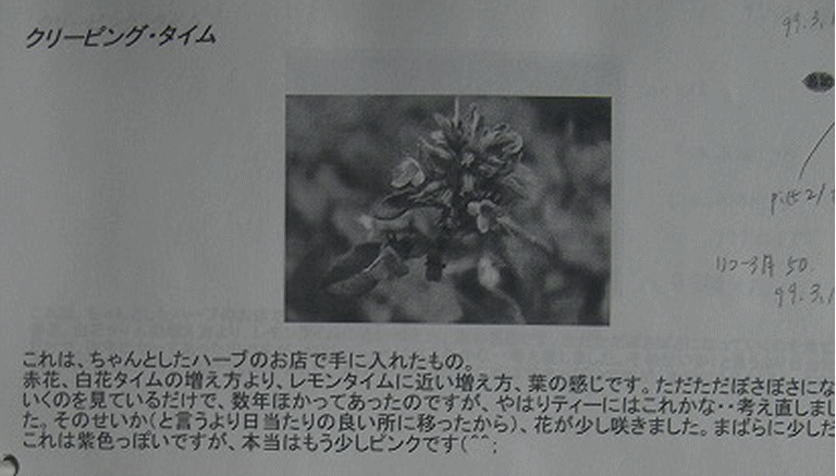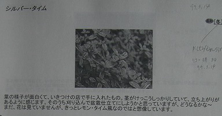 | コモン・タイム <学名>Thymus vulgaris <英名>thyme 木立タイム 種子にて販売 |