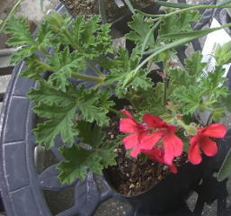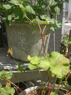 <ゼラニュウム類は、ほとんど根ずまり状態で枯れてしまいましたが、3種ほど残りました>
