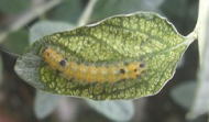 なんか、葉色がおかしいと思ったら、毛虫です