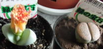 隣にちびちゃん楊貴妃メダカ、上にはリトーブスが載って、隣は親友に貰ったシクラメン、雫石にメアリー