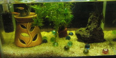 下用の水草は面倒なので、ビー玉