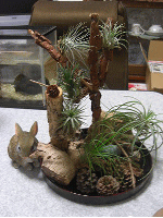 エアープランツも、机の上で邪魔だからと、お盆に木を横にではなく縦に組み立て