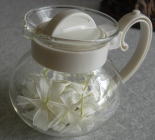 この花に、お湯を注いで、しばらく待つと、薄茶色のジャスミンティーの出来上がり