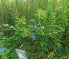 朝6時の散歩で、ほったらかしにしてある雑草の中に朝顔を見つけた
