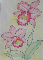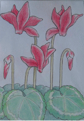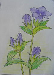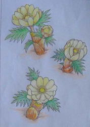 植物画だと黄色の上に赤をのせると上手く発色するとか、こわごわ塗ったキキョウも見抜かれてしまった