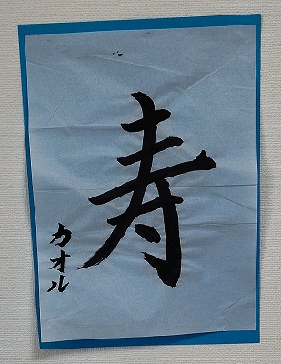 ホールの一角で書き初めを勧められ、頭に浮かんだ字を書きました。