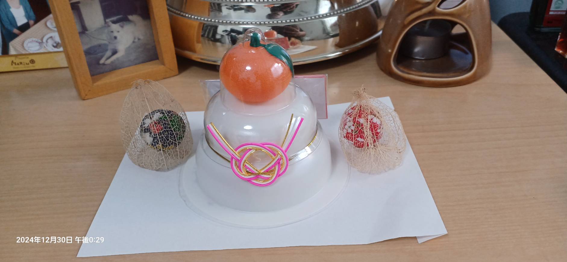 主人が持ってきてくれた鏡餅の飾り。 それだけではちょっと寂しいと思って 私なりに アレンジして見ました。 ちょっぴり 華やかになったと 思いませんか…。