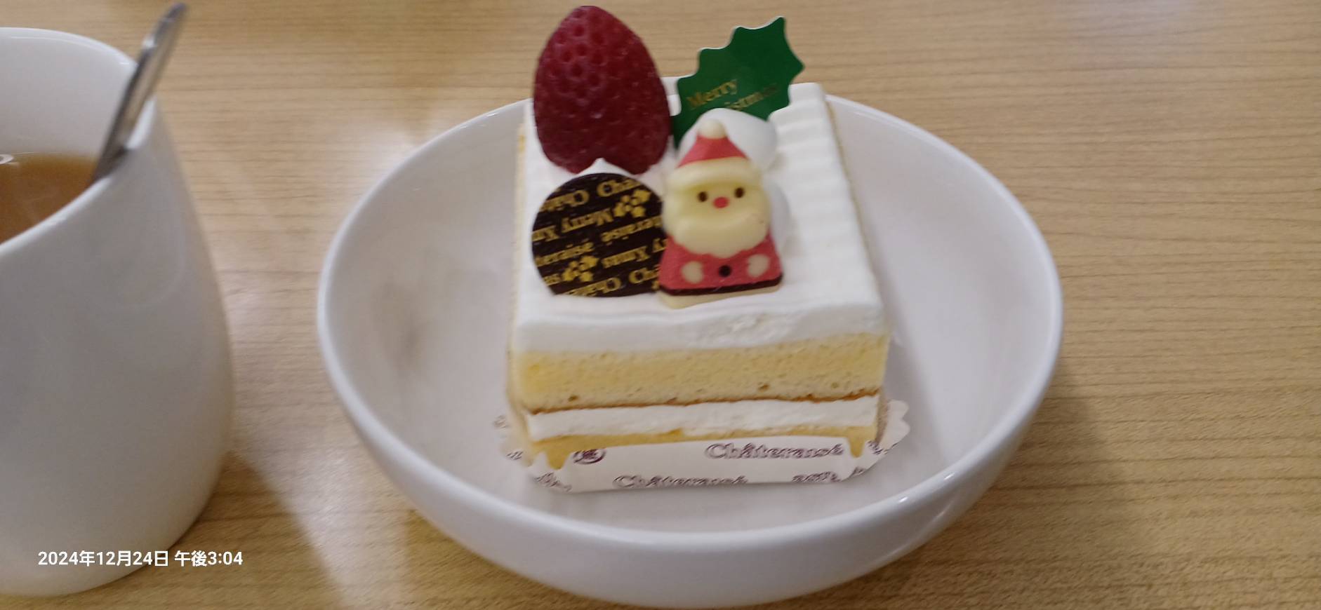 その後は おやつの時間。 「本当のケーキは無理だろう」と思っていたら 小さな可愛いケーキと飲み物。 これにも みんな 大喜び。 スタッフの方たちが 忙しい中 本当に楽しいクリスマス会を開いてくださって ありがとうございました。