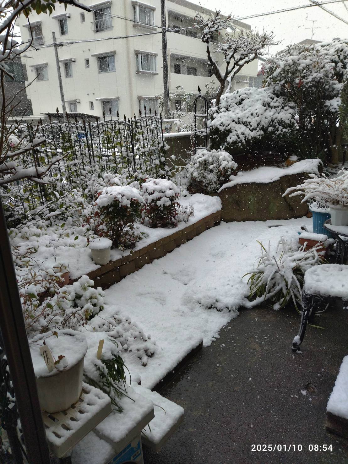 今日は 朝起きたら雪が積もっていました。 まだ雪は降り続ける様子です。 食堂に行ったら 皆さん 雪の話に夢中。 私にとっては 金曜日が 主人が来てくれる日。 この雪の中を来たら 大変と 早速中止するように メールを打とうとしたら 1足先に 今日は 中止のメールが入っていました。 それと 家の庭の 雪景色の写真を 送ってくれていました。 親友からも お家の雪の様子の写真が 届いていました。 子供たちとは違って この年になると 雪がやんで 自然に溶けてくれることを 祈るのみです。