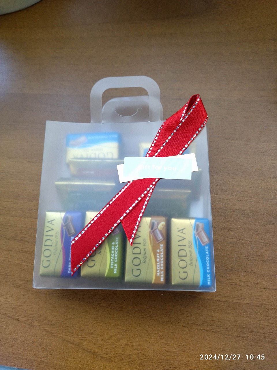 今年は少し遅いクリスマスを 主人と二人で過ごすことにしました。 主人がとっても可愛いカップケーキを買ってきてくれました。 そういうものを買うような人ではないのですが「お前の好きなのは こういうのだろう」と言ってくれました。 本当にそうなんです、 私は大喜び。 私は ゴディバのチョコレートを 主人にプレゼントしました。