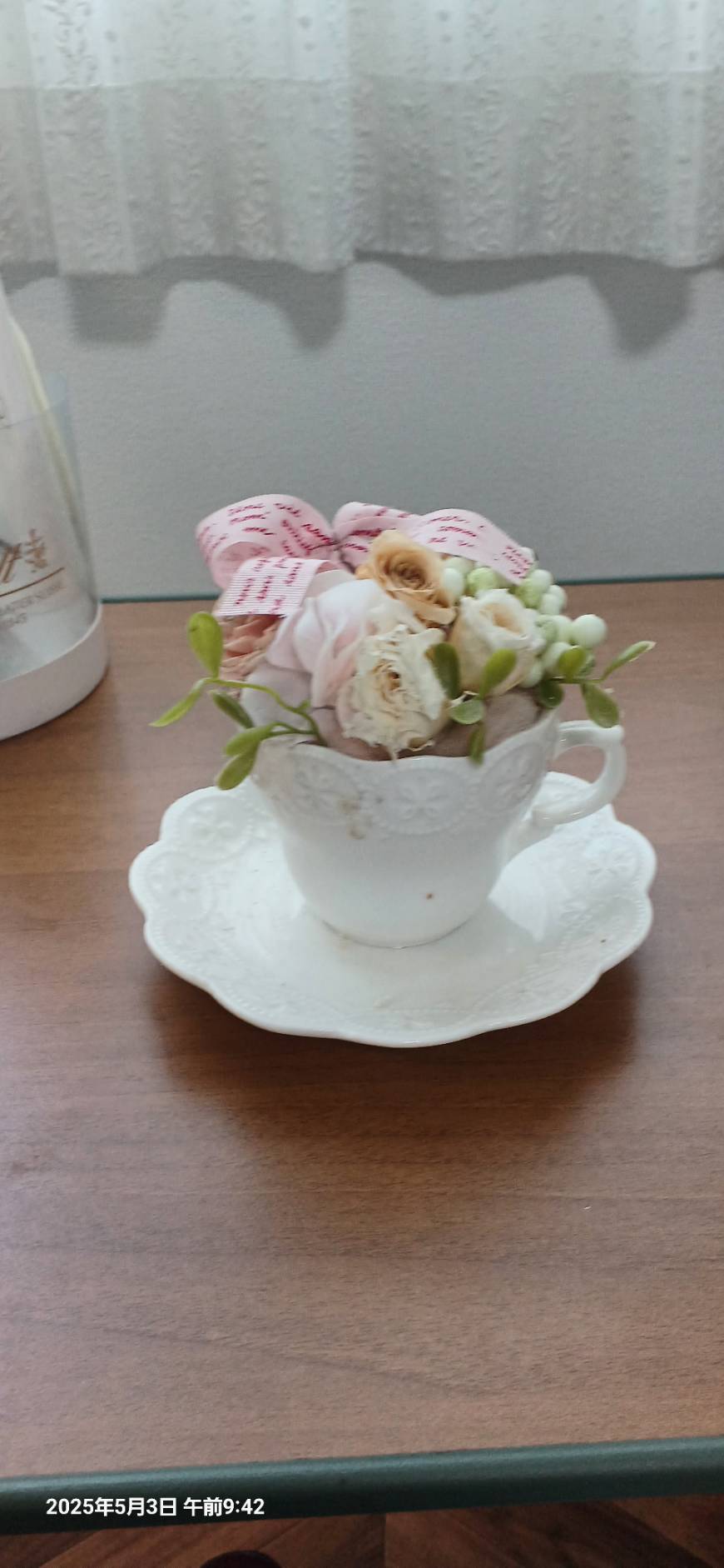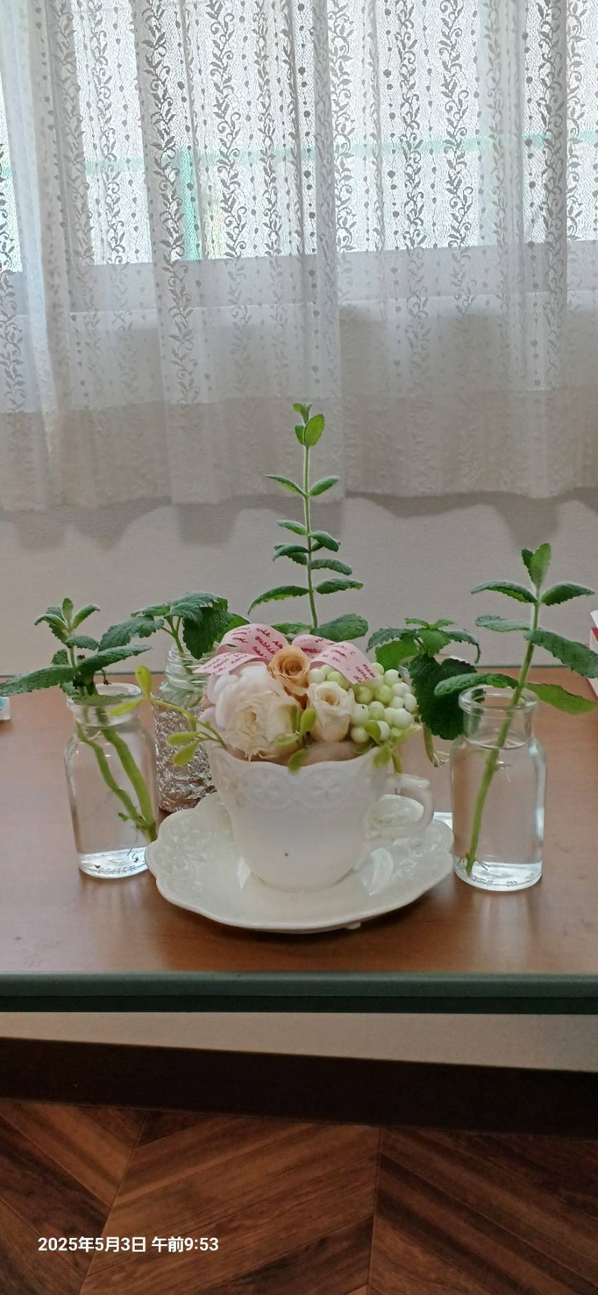 朝早く目が覚めたので ベッドの中で考えました。 花は 生花が いいのに決まっていますが 今は 本物と間違えるような造花が 結構 売っています。 造花に香りをつけて 見るのはどうかと 提案しようと思っています。 球根なら 咲かせることは できると思いますが 残念ながら 私と同じように 北向きの部屋。 太陽が 入らないのは 難点。 先ほどの 花たちに ハーブ類の葉っぱを添えてはどうかと 提案してみないと 分かりません。 今日の午後1時に お約束してあるので 話がどう進むか ドキドキです。 そういえば昨日 先生と一緒の訓練で 車椅子を応用した練習を廊下で 往復3回できました。 これも バンザイです。 火曜日 金曜日 先生がいらっしゃるのが 楽しみです。