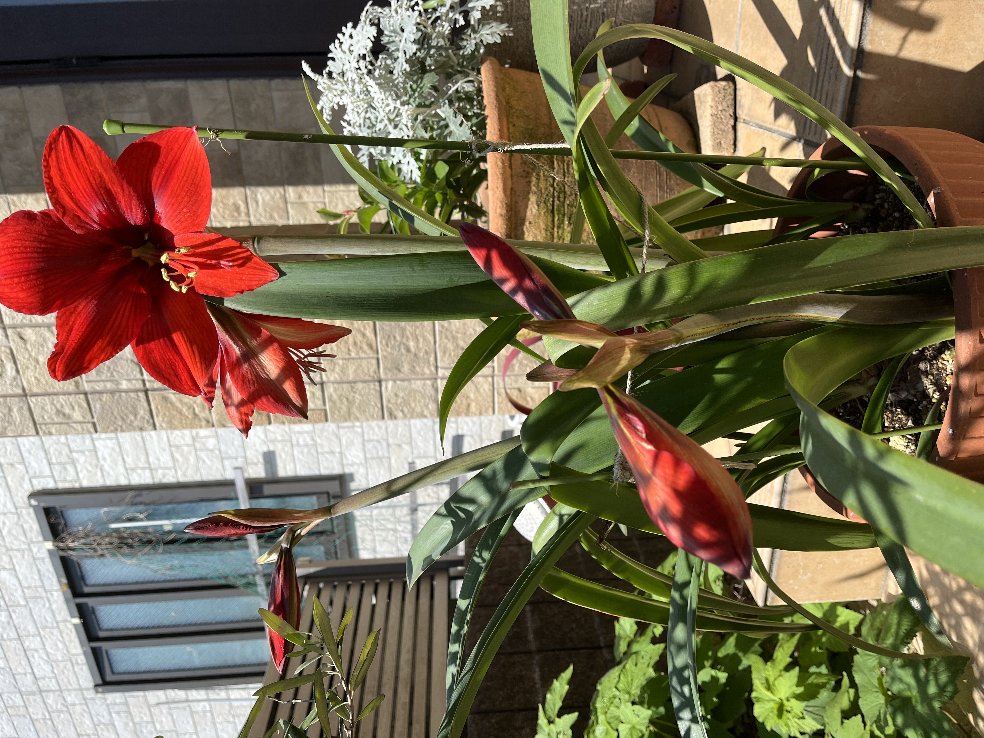 家の近くの友人が お庭で咲いた花の写真を 送ってくださいました。 ご近所の方から頂いた 小さな球根植物のようです。 ご本人も こんなに大きくなると思われず びっくりなさったようですが この花から元気をもらっているとか…。 私も写真を見た時 びっくりしました。 夏を思わせる 花の大きさと 何とも言えない花の色合い。 また 蕾が たくさんあるようで 全部咲いたら さぞ見事だろうと 思っています。 私も この写真を見ながら 元気オーラを 頂いています。 何とも言えない不思議な花ですね。