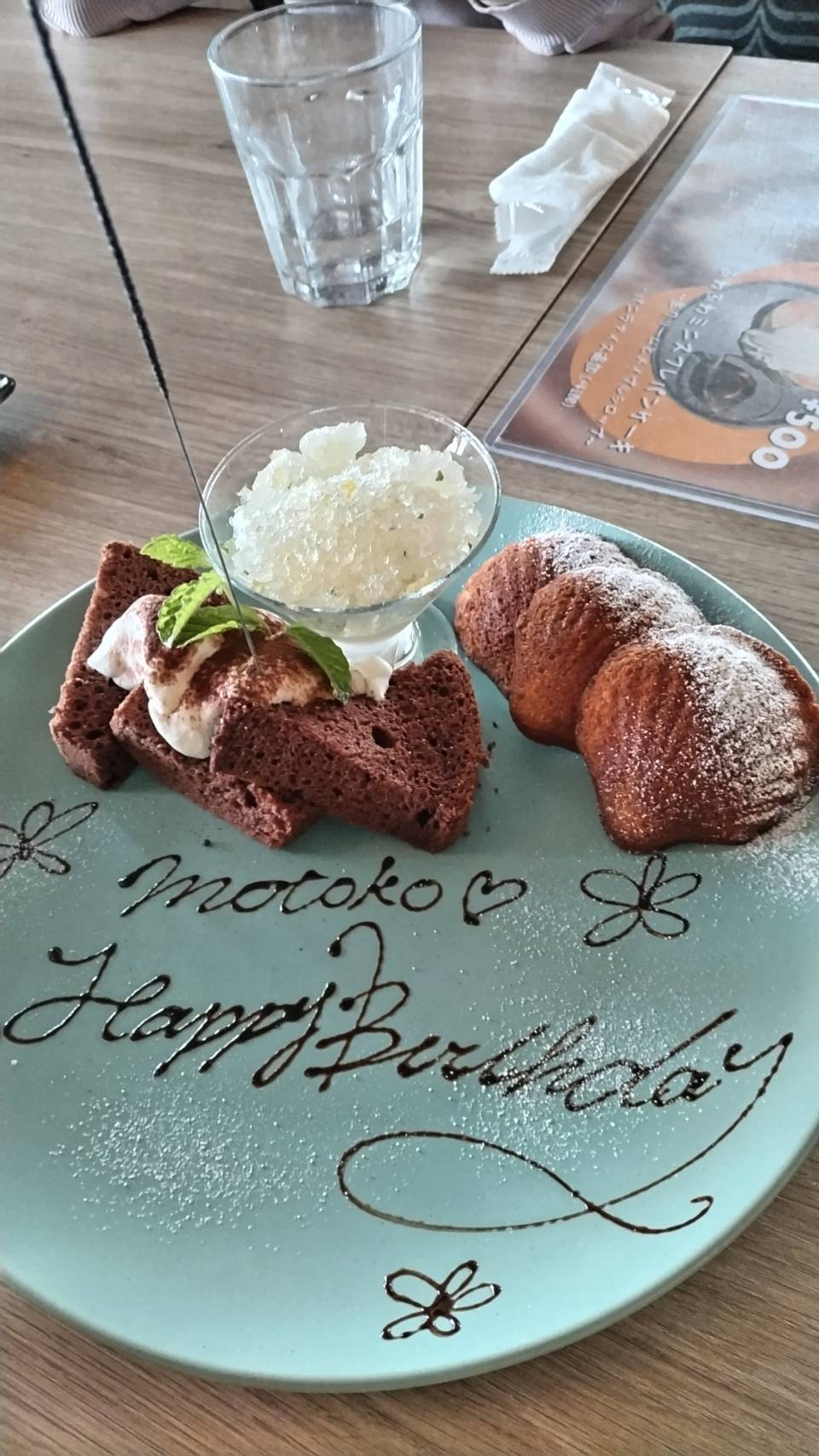 これは親友が娘さん2人に 母の日と 誕生日のお祝いに 連れて行ってもらった お店の食事です。「幸せの裾分け…」と 書いてありました。 どれも美味しそう。娘のいない私には ちょっぴり羨ましいですが 彼女が 本当に幸せであることが分かって 嬉しいです。 今までずっと 義理のお父様 お母様を見送って 子供たち3人も 愛情たっぷりで 育てた彼女。 自分のやりたいことを 抑えて…。 そんな彼女が 今は 子供さん お孫さんに囲まれて 楽しい日々を 送っているのは 嬉しいです。 いっぱい いろんなところに行って その時々の写真を いっぱいいっぱい送ってくれます。 私も一緒に出かけているような気分になるのは 今の私の世界の中で 新鮮で とっても 嬉しいです。