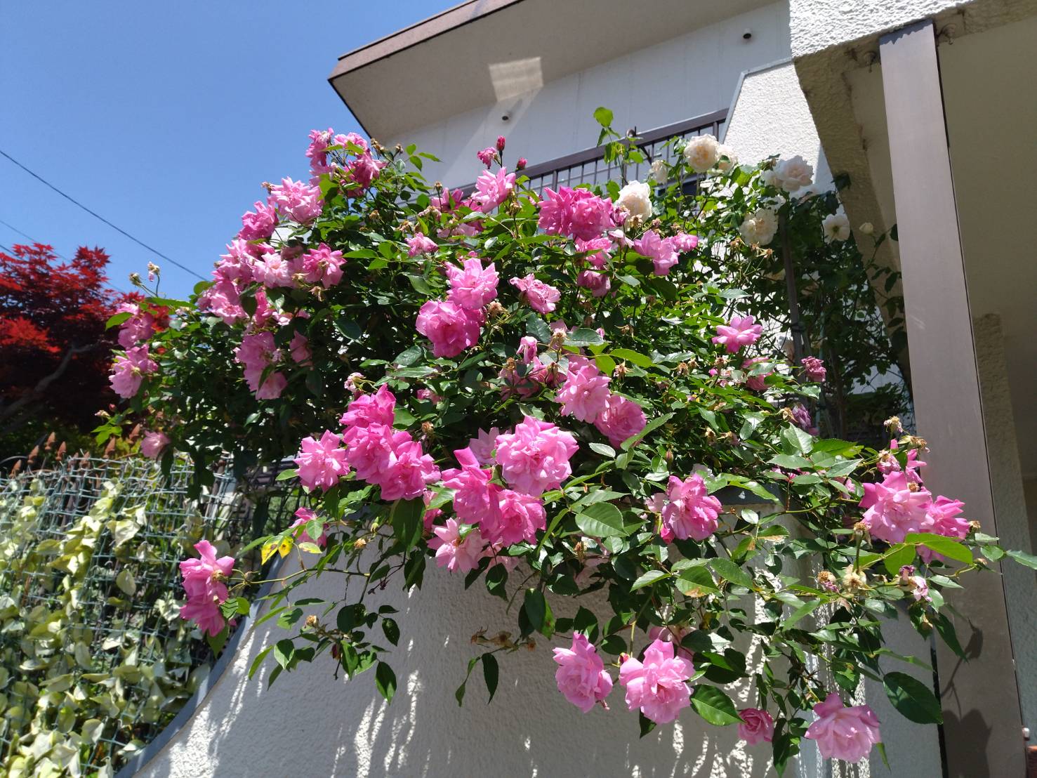 私たちが結婚してしばらくしてからずっと家にある バラの花が 今いっぱいに咲いています