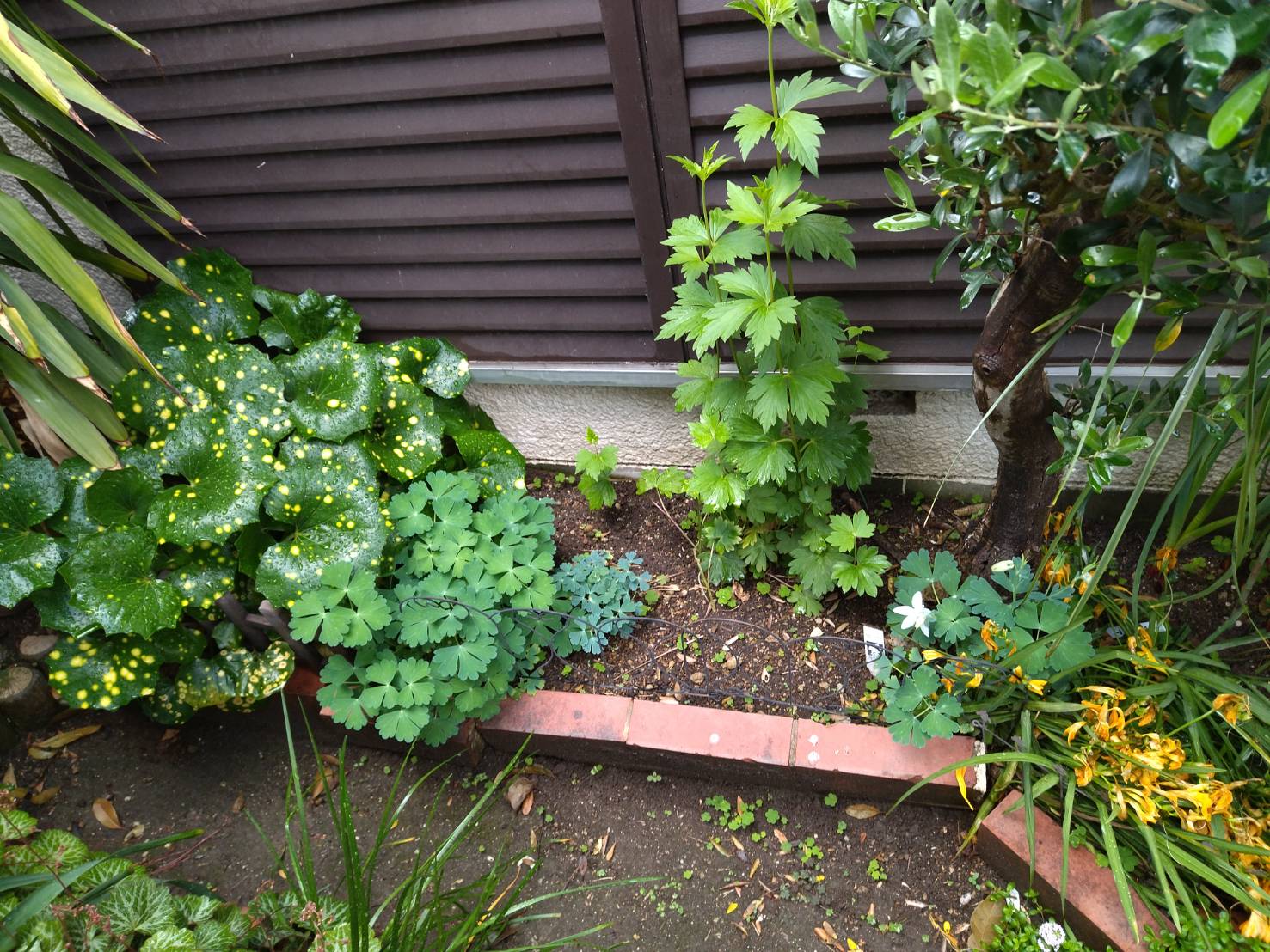 オリーブの木の横に フリージアやオダマキ がいっぱい増えています。 そして見つけました。 私と親友だけが知っている 秘密の植物。 大体真ん中あたりに 植わっているのが そうだと思います。 なんかとっても嬉しいです