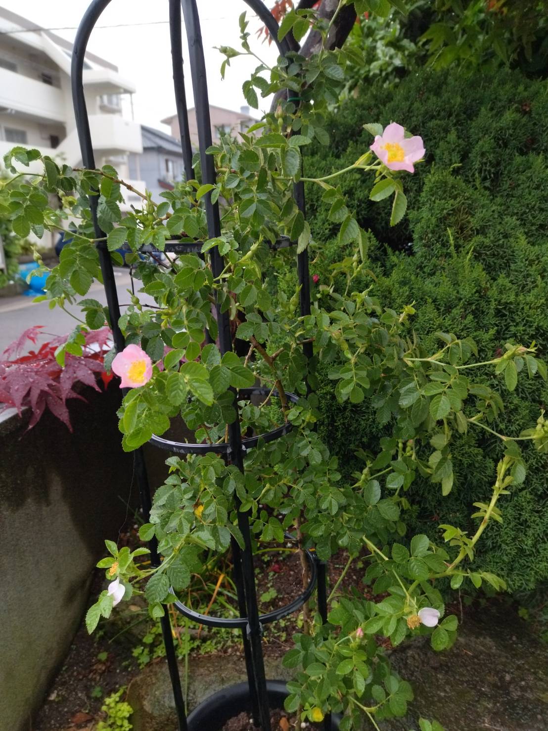 我が家のドッグローズが 花を開きました。 これは ローズヒップを取るハーブのバラと いえばいいでしょうか。 花がこんなに咲くのは 私の時ではありませんでしたし 葉っぱが こんなに 茂るのは 見たことがありません。 やはり 主人の方が 園芸に向いているかもしれません(笑)
