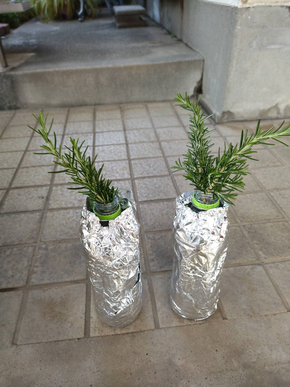 こちらも 我が家のローズマリーです。 右側のローズマリーが 大きくなりすぎて手に負えないと 剪定してくれました。 内緒ですが私だったら もうちょっと違う形に 剪定したんだけどな~ 。 でも 一生懸命 いろんなもの手入れをしてくれて 頭が下がります。 その時に切った枝を 私のように 水差ししたみたいです。 また これであった時の話題 また一つ増えます。 こんなことを していると 昔 お茶とおにぎりを持って 多治見の土地に 出かけて行って ハーブを いっぱい植えていた時のことを 思い出します。 小さなことでも なんだか 離れていても 一緒に 話ができることがあるのは 本当に嬉しいです。