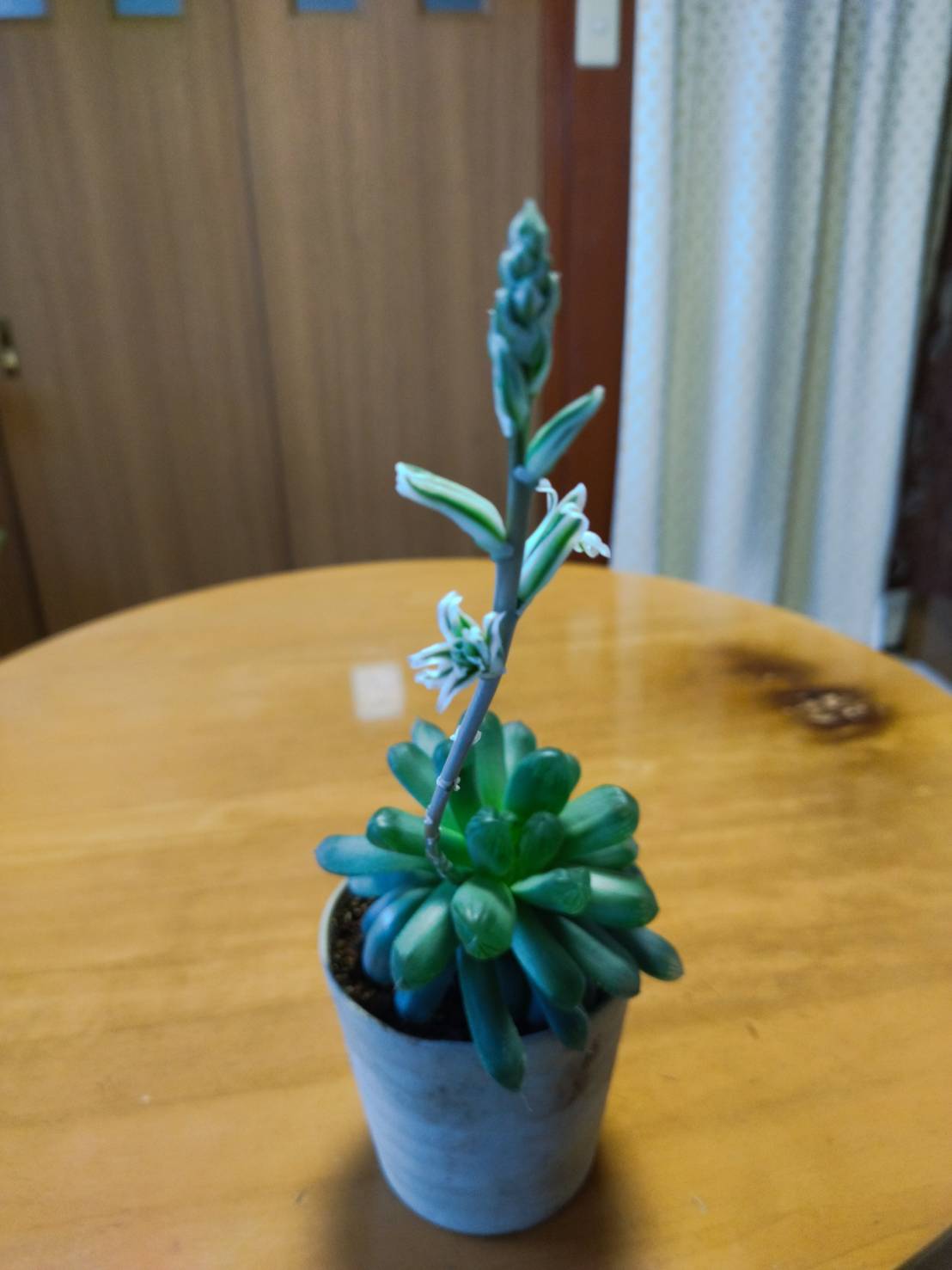 私が育てていた 多肉植物たちが 花を咲かせました。私の時は 花を咲かせてくれるものは 少なかったのですが この写真で見る限り 主人の方が やっぱり園芸に向いてるかもしれません(笑)。