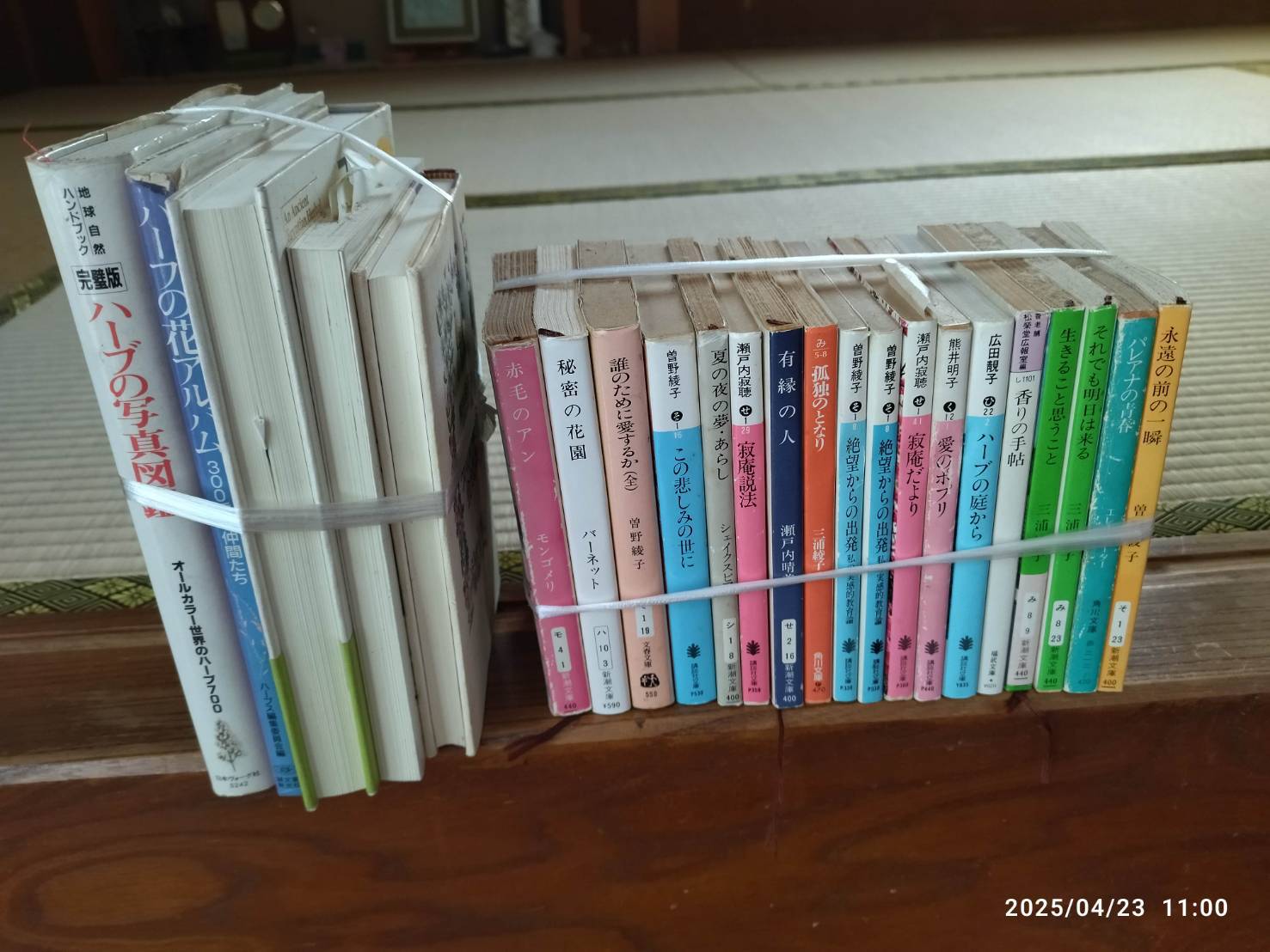 先日 主人に頼んでおいた本を 持ってきてくれました。 この 「HERB」の本は 昔 発売の日を楽しみに 買いに出かけたものです。 何しろ 写真が素敵で 説明を読むのも 楽しみの一つ。 ラベンダー色のこの表紙以外には そんなに残っていないと思ったのですが 「50冊以上 あるよ」の主人の声に びっくり! 楽しみながら 素敵な 写真を 見られるなら 慌てて読まなくて 年を取って 目が弱くなっても 見られるだろうと 見るのを 後回しにすることにしました。 読みたい文庫本もありますし 今回 別に縛って持ってきてくれたものもあります。 まずは こちらを整理して 読んで行こうと思っています。