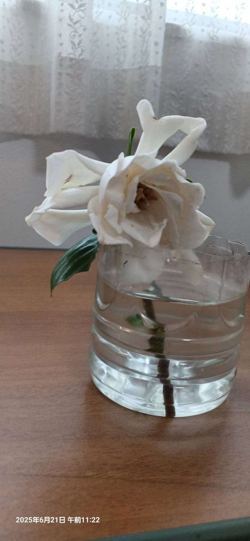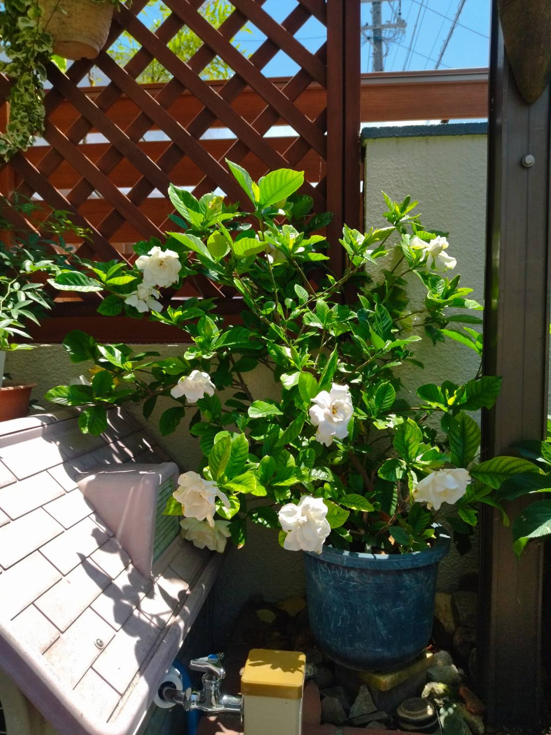 くちなしの香りとともに 主人が部屋に入ってきました。 少し虫に食べられたと 言っていましたが 大きな花が3輪。 あっという間に 部屋中に 香りが 広がりました。