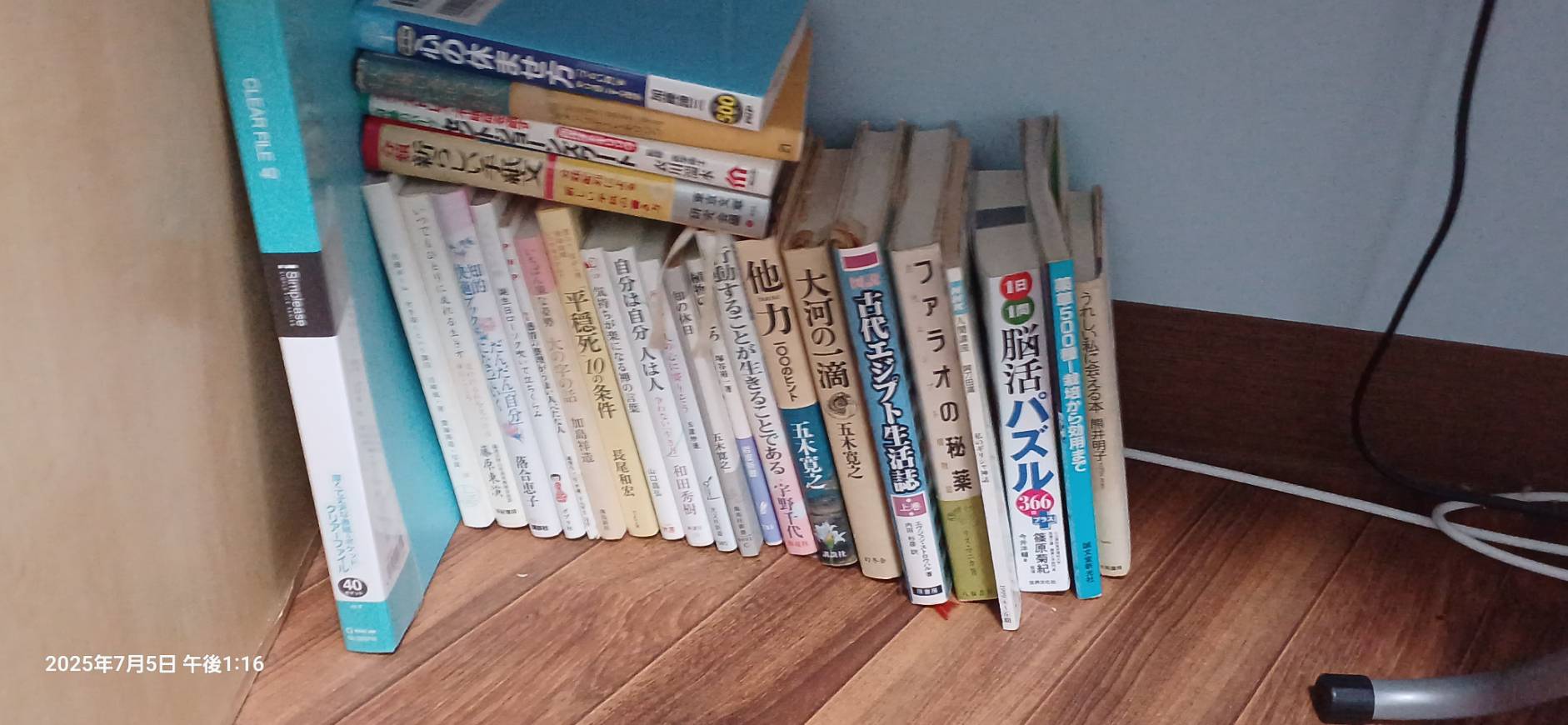 主人が持ってきてくれた 文庫本を整理した。 何十年前か 心の行き先が見えずに 本屋の棚の中から 手にした 何冊かの文庫本の本たち。 年とともに何度も目の前を整理したけれど 捨てられなかった10冊ほどを 手放すことにした。 今現在 私の この先の人生に 何の迷いもない。「人生とは」 となる本を読むときは 過ぎた。 これから先は 穏やかに 主人を 愛し抜くだけ。 もう 人生の 本の中に書かれている 1行も必要としない。 残ったもの 「赤毛のアン」 「秘密の花園 」「ハーブの庭から 」その他数冊。 なんか スッキリした。 文庫本以外のものも 少しずつ持ってきてもらって 整理していこうと思う。 右の写真は 家に私のものとして 置いてある場所。 積まれた物を見て ギョッとした。 私の終活は 何度やっても終わらないけれど それが また いいところなのかもしれない(笑)