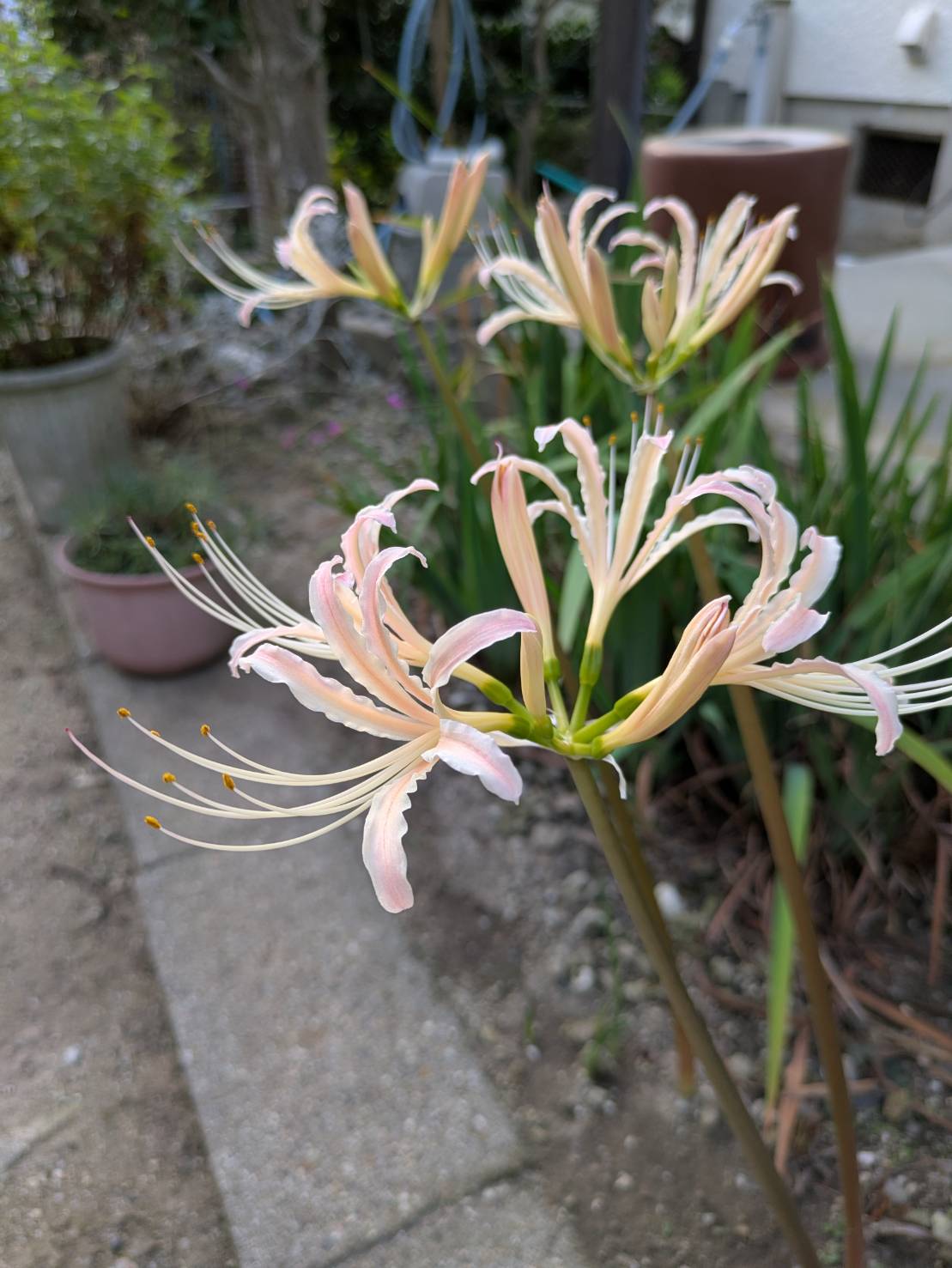 こちらは 主人の後に 妹が散歩の途中で 写真を撮って 送ってくれた彼岸花です。 クリーム色の彼岸花は 「庭に植えたはずがないのに」と 驚きの声を送ってきました 。 彼岸花は 球根で増えていくはず…。 どうやって妹の鉢の中にやってきたのでしょう?? 施設のスタッフさんの一人が 一眼レフで この花を撮りに 遠出してくると 息巻いています。 こちらの写真も楽しみです。 暑い暑いと言っていても 秋は確実にやってきていますね。