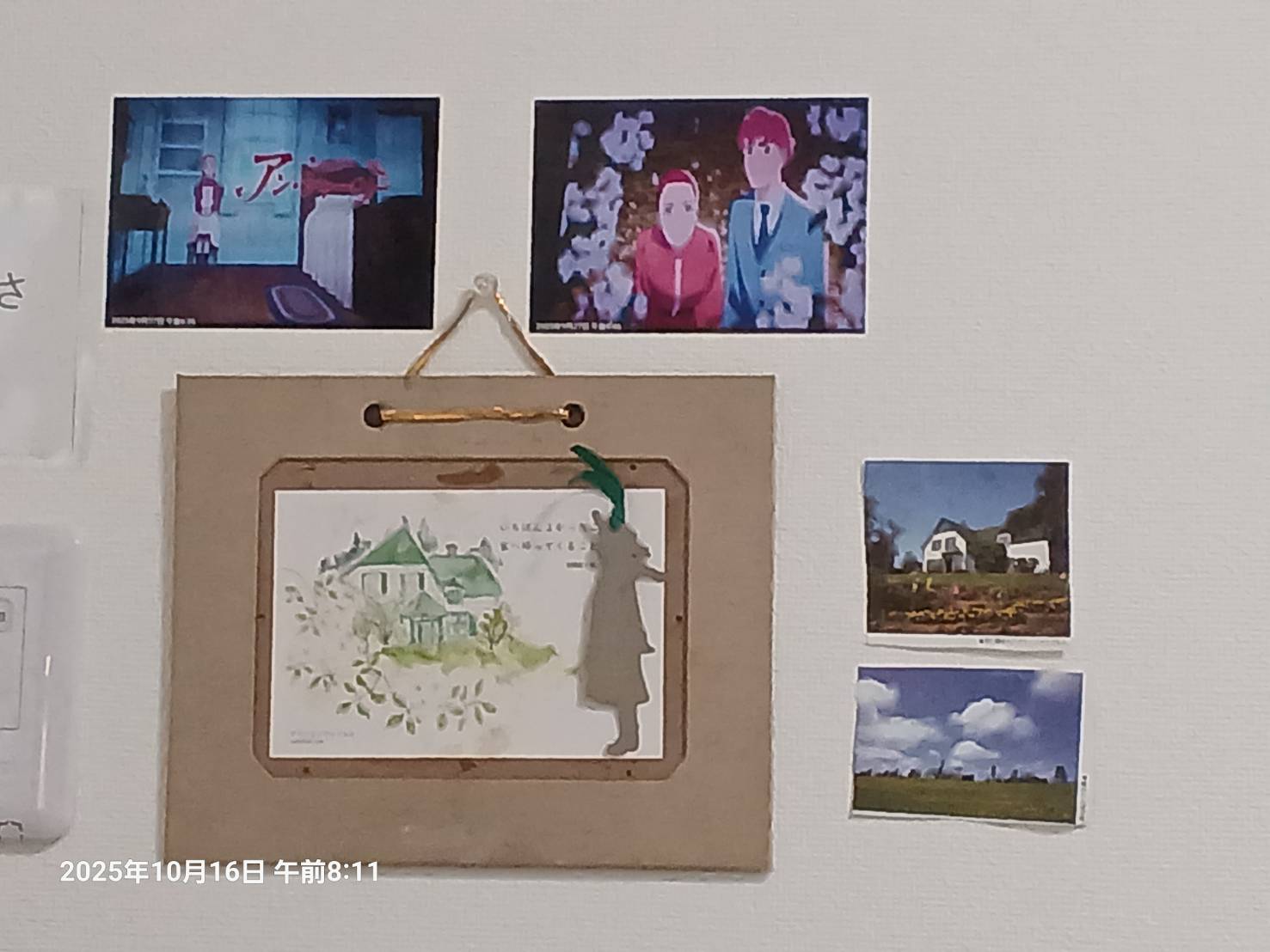 テーブルの3人は 朝食後 8時前には部屋に戻るために 薬や 血圧 体温などを 計ってもらうのに 焦っていたのは NHK朝ドラ「 アンパン」を見るため。 そして 木曜と土曜日は 「アン ・シャリー」を見るために みんなで 時間の確認をしていました。 私が特に楽しみにしていた時間は「アン・ シャリー」です(昔で言えば 赤毛のアン)。 そして 9月いっぱいで その2つが 終わりました。「アン・シャーリー」が終わるのが寂しくて 最後は テレビの画像を写真に撮りました。 私の生涯の中で アンには いつも 励まされたり 助けられたりして来ました。 アンの想像力も 大好きです。 もう一生 この施設から出れないことを思うと 少し寂しくなるので ベッドの横にアン・コーナーを作りました。 昔から私のそばにいたアンです。 ここでも 私を見守って 心に喜びを吹かせてくれることを願って ...。