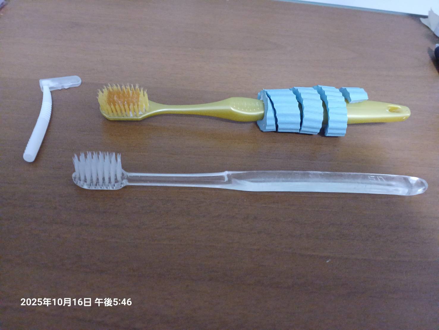 「今度 歯が抜けたら 入れ歯だよ」と先生に言われて 次の日 見事に奥歯3本 連続のかぶせものが 取れてしまいました。 食堂で ご飯を食べている時 何かごそごそ??? そっと出してみて またびっくり! 早速 先生に連絡していただき 奥歯の入れ歯を作る準備に入ることに なりました。 確かに 歯は悪いのは 承知していましたが 歯科衛生士さんに 週1回は見てもらって 歯磨きも 進められるまま 歯ブラシ2本 歯間ブラシで頑張って来たので もう少し もつと思ったのですが…。 まあ ここまで もってくれただけでも 良しとしなければ。 ただ この右手で 入れ歯の出し入れが できるのかが心配です。 まあ これもなんとかなるでしょう。