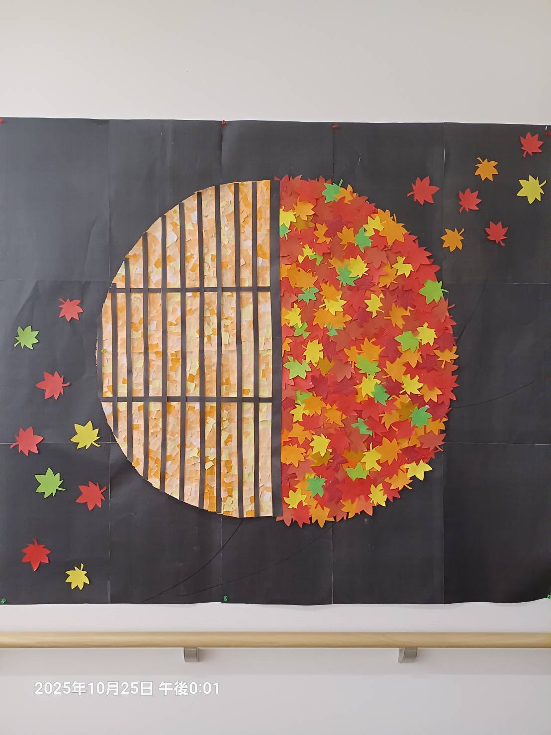 載せるのが遅くなりましたが 10月に入って 今まで 朝顔が飾ってあったところに 秋の紅葉が 美しく貼られました。 紅葉をどう表すのか 楽しみだったのですが このような 日本の風情を出して 紅葉を表すのは とっても素敵に感じました。 スタッフさんの 頭の中には 色々な 景色があるのでしょう。 その1つをこうやって 見せてもらえるのは とっても幸せです。