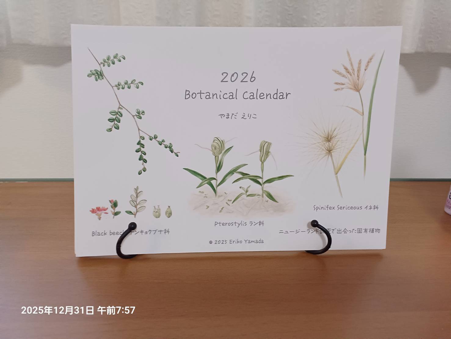 机の上には 親友からもらった ボタニカルカレンダーを置きました