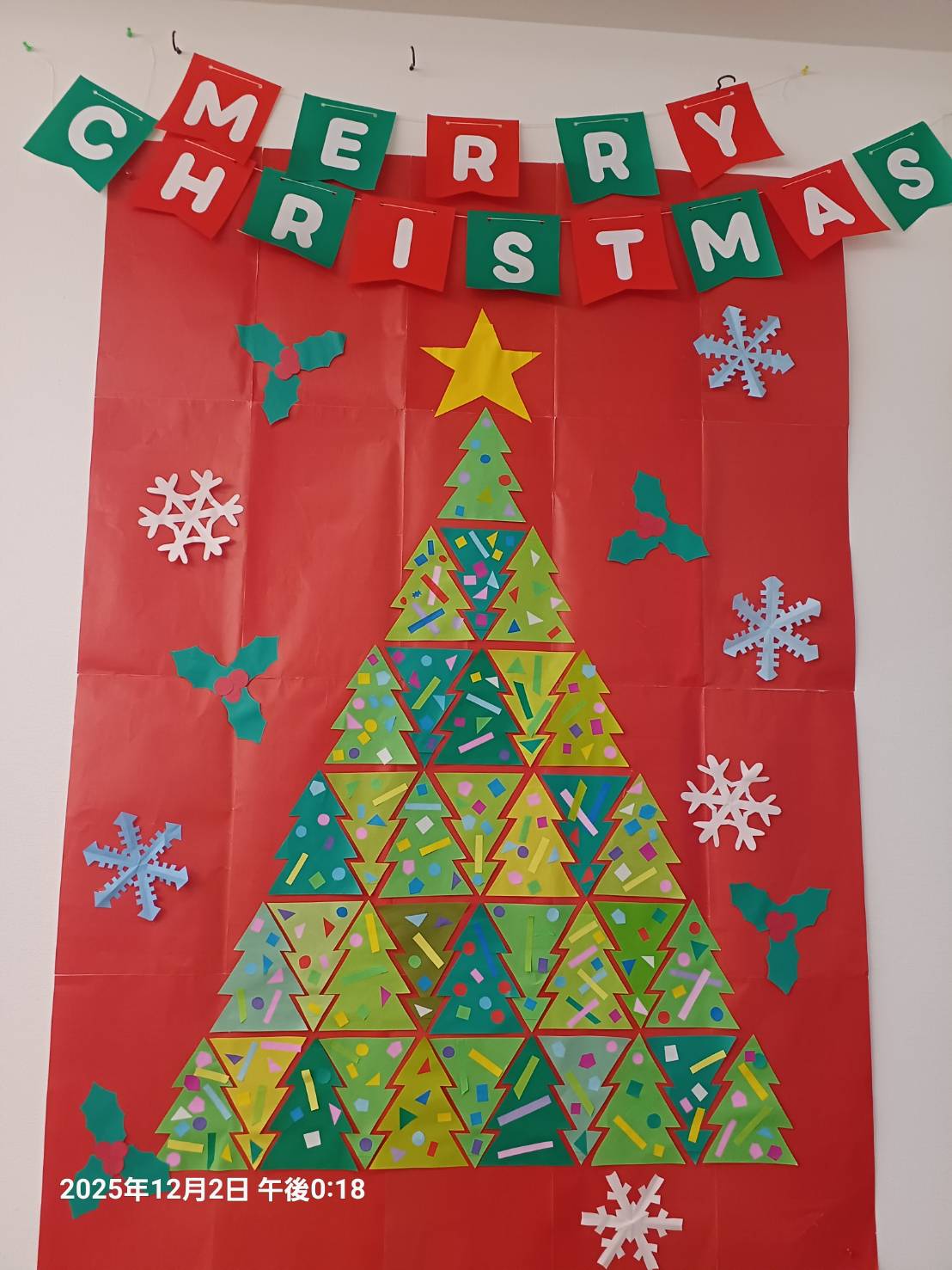 クリスマスに向けて 第1弾の貼り絵作品です。 1人のスタッフさんが 案をねっての一部分です 入居者さん スタッフさん 皆さんで 作っていったものです。 よく見ると細かなところまで 心が届いたような 繊細なツリーです 。 私は残念ながら 手の方が うまく動かなくて 一度参加しただけで お手上げでした。 貼り絵は 好きな方が多くて 熱心にやってらっしゃるのを 部屋で感じているしかありませんでした。 でもでも こんな素敵なのができて本当に嬉しいです