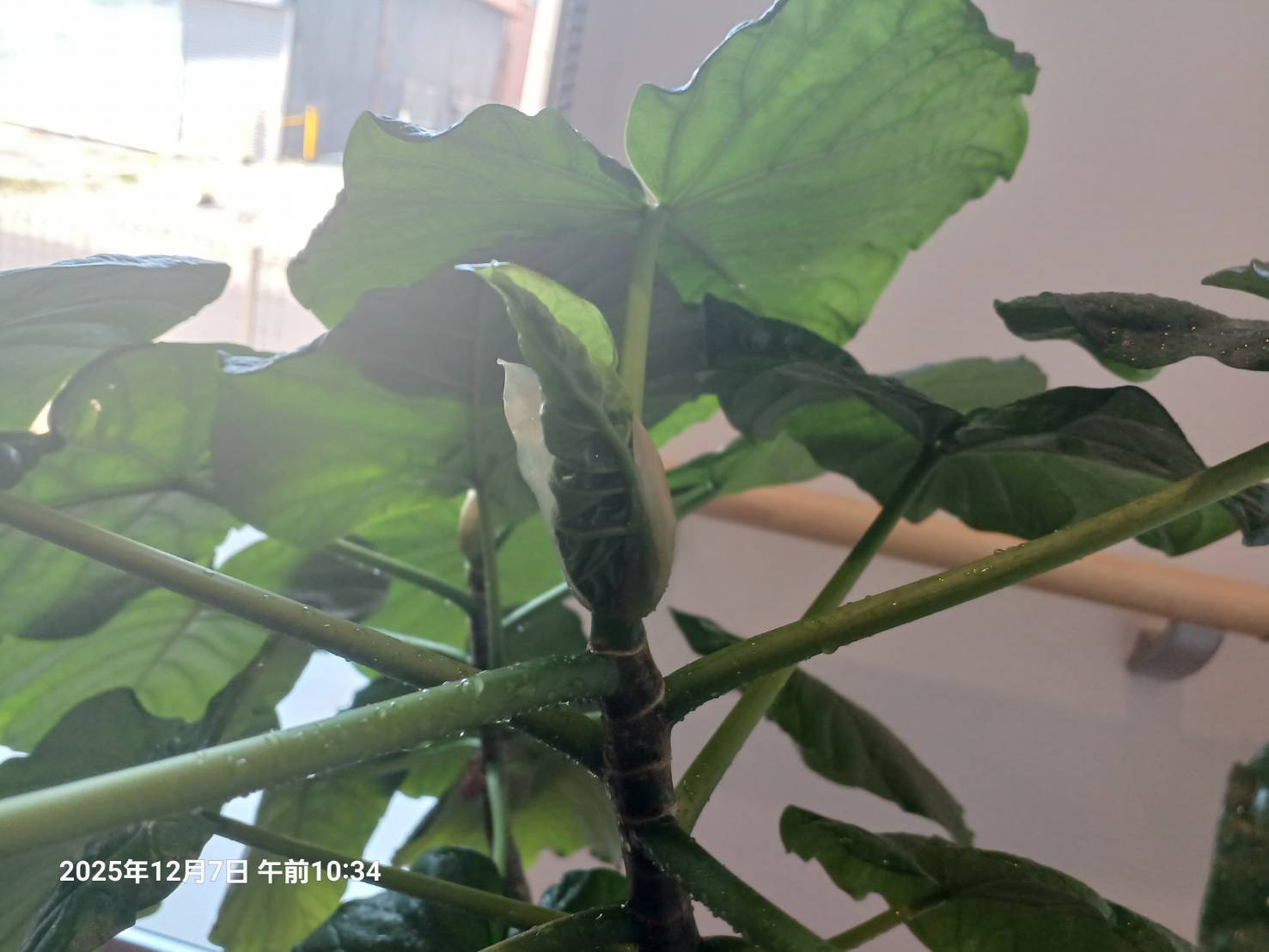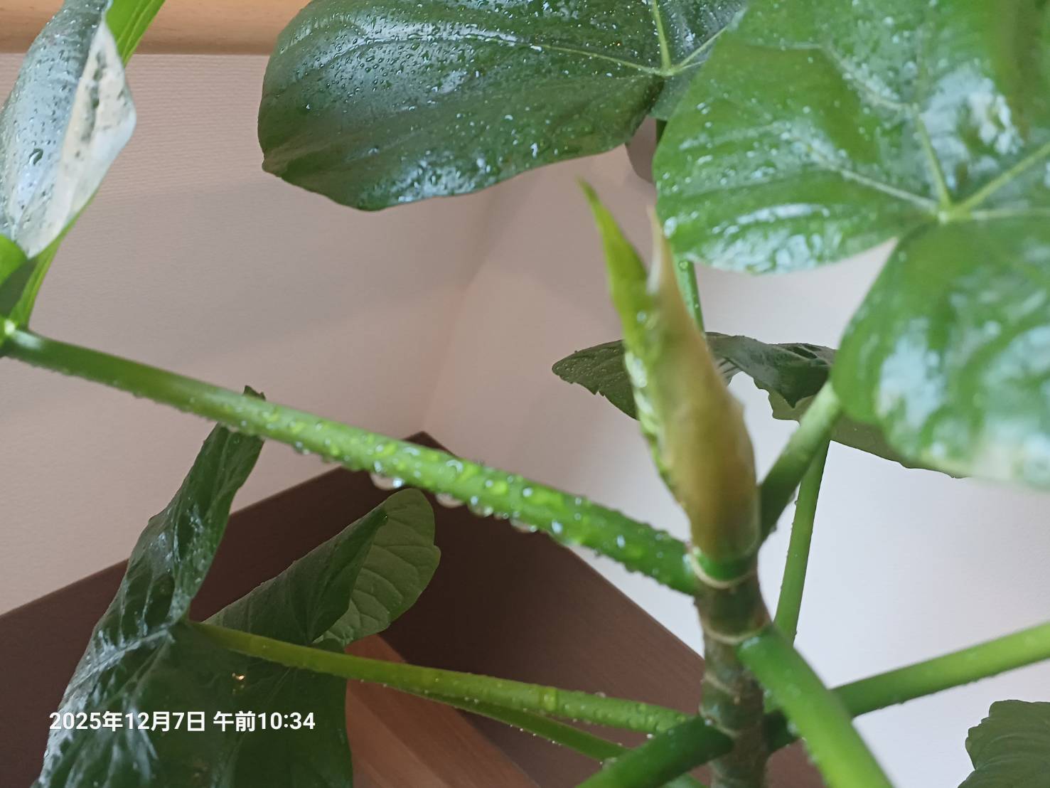今 私が 葉水をやっているウンベラータですが 茎の先っぽに 葉芽が2つ出てきました。 なんだかとっても嬉しくなりました。 一生懸命生きている植物に また改めて救われています。