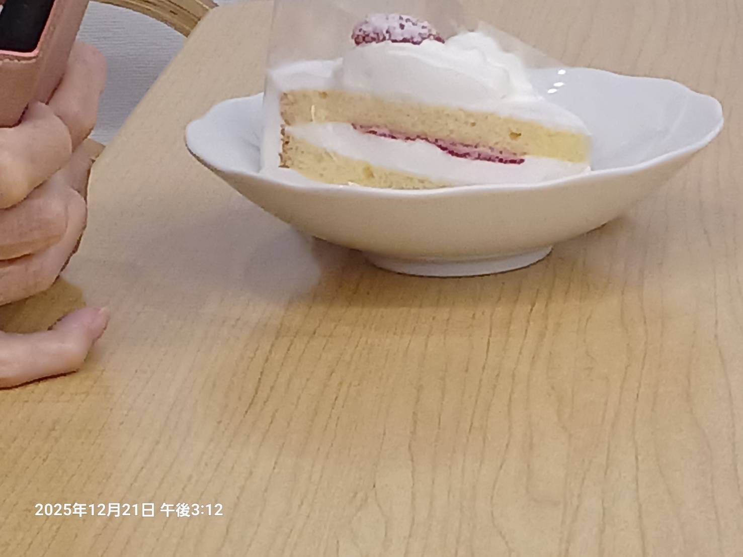 昼食も クリスマス仕様 。 これも美味しくてお腹いっぱい。 でもおやつは近づくに なるにつれ みんな また そわそわ。 今年のケーキは 3種類あって 品物を選んで良いとのことでした。チョコにモンブラン といちごの 乗ったショートケーキ 3種類。 いちごの乗ったショートケーキ ですが 私がカメラを向ける前に イチゴが お口に 入って しまった ようです。 すごく美味しそうに見えたのですが 残念…。 さて あなたならどれを選びますか?