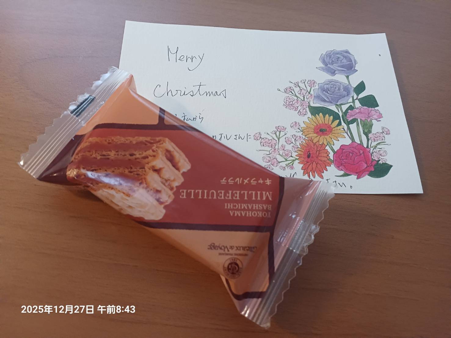 親友からのクリスマスプレゼント。 来年のボタニカルカレンダーと 美味しいミルフイユのお菓子 ありがとう。