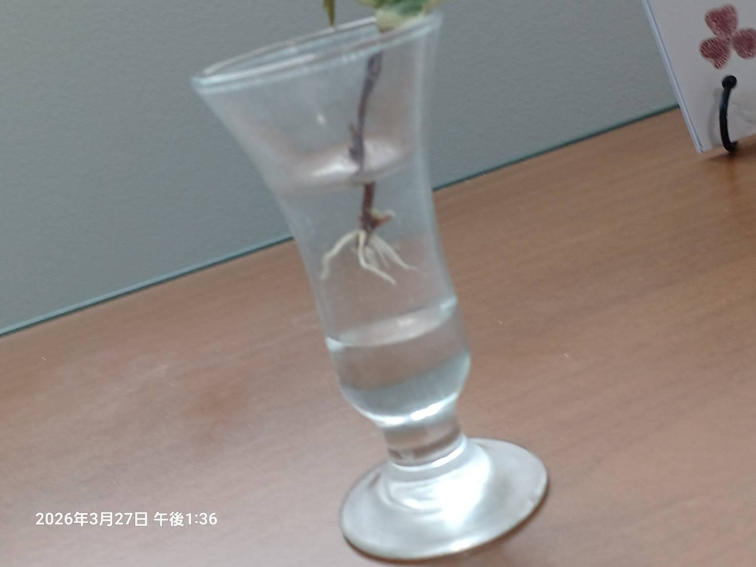 「根には 土の根と水の根がある」と スマホで何か探していた時に知りました。 それから気をつけてみるようになり 好きになりました。 水に伸びるのは本当に真っ白な根です。 植物の世話をした後 冷たい牛乳をコップに入れて ゆっくり飲みながら 植物の声を聞くときに 力強く出てくる白い根を見ていると「生きる力を 感じさせられるひとときです。