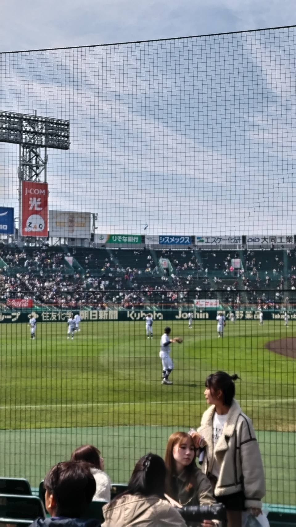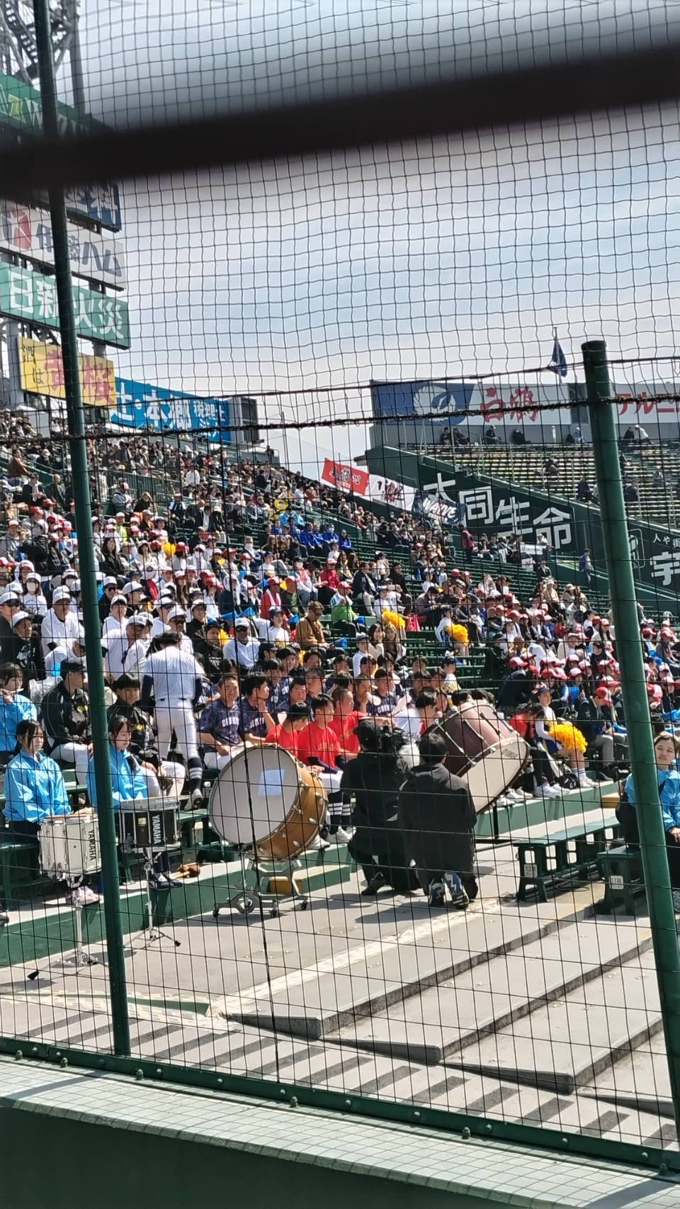 親友のお孫さんが入っている野球部が 勝ち進んで甲子園に行くことになりました。 彼女も 甲子園に行くと 大喜びで出かけて行った時の写真です。 私もテレビで ずっと応援していたのですが そう思ったのは私だけで 介護の人に言わせると 途中でいびきかいて 寝ていたとか…。 でもしっかり 最初と最後は見ました。 1回戦は無事に勝ちました。 彼女もあの応援団の中で 大喜びしていたと思います。