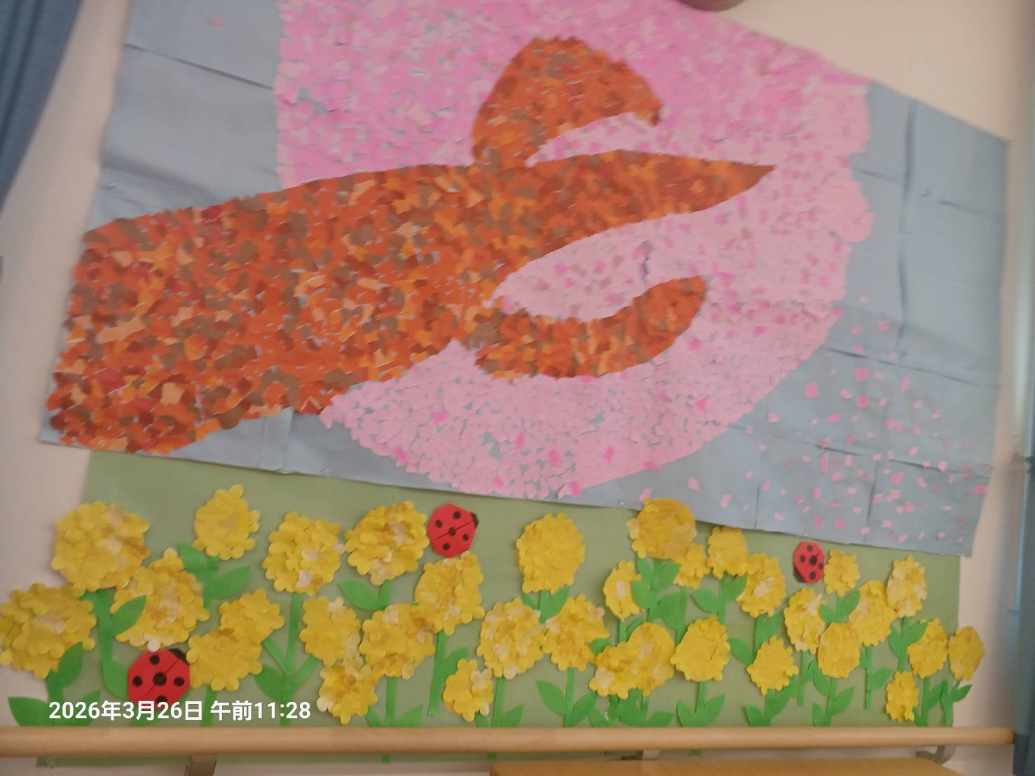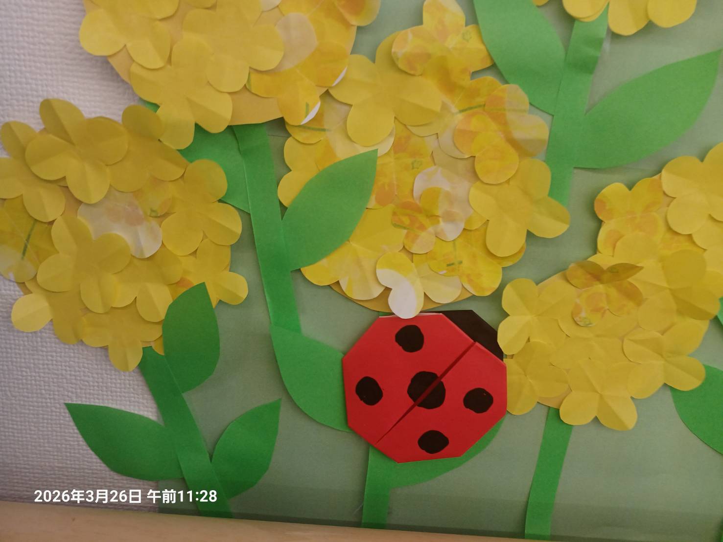 4月に向かって スタッフの男の子たちが 作ってくれたものです。 菜の花の横に入れ てんとう虫も とっても可愛いです