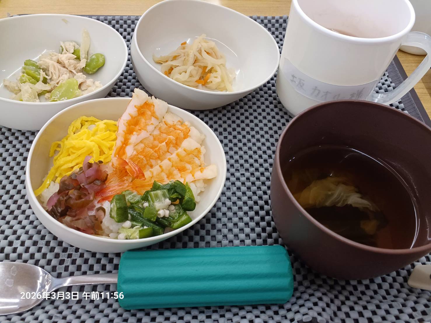 「ひな祭りの日は 昼食に ちらし寿司が出るんじゃないかしら」と言っていたら やはり出ました。 美味しかったです。
