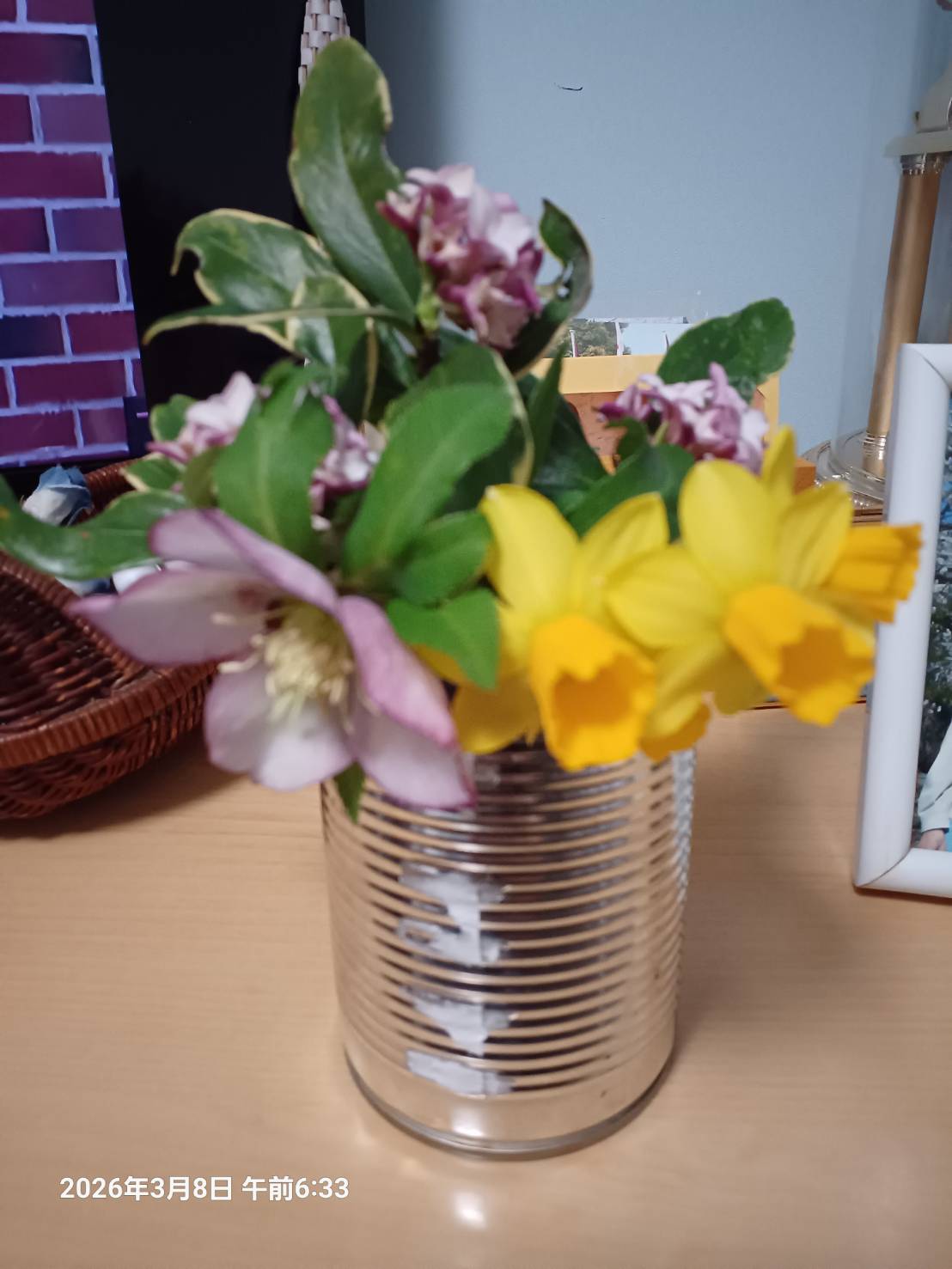 これは 後日 金曜日に来る時に 家で咲いてる花を 持ってきてくれたものです。沈丁花に 黄水仙 そして クリスマスローズです。 今頃の庭が 目に浮かぶようで 嬉しいです。