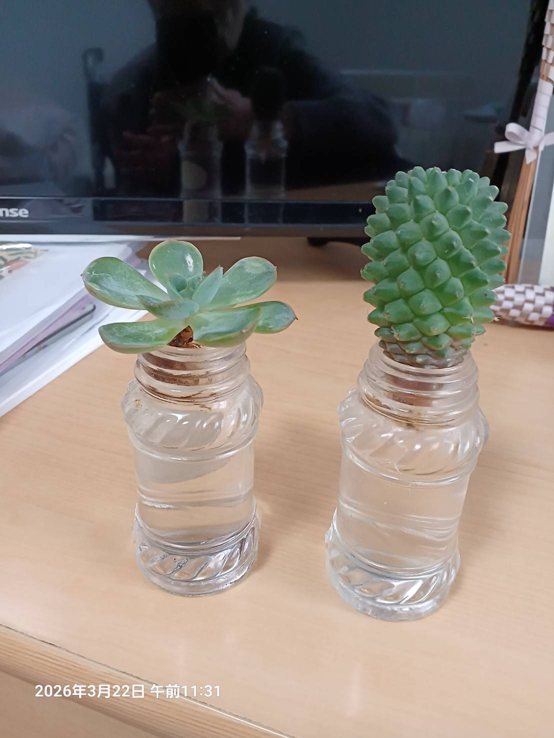 この前買った 多肉植物とサボテンです 。