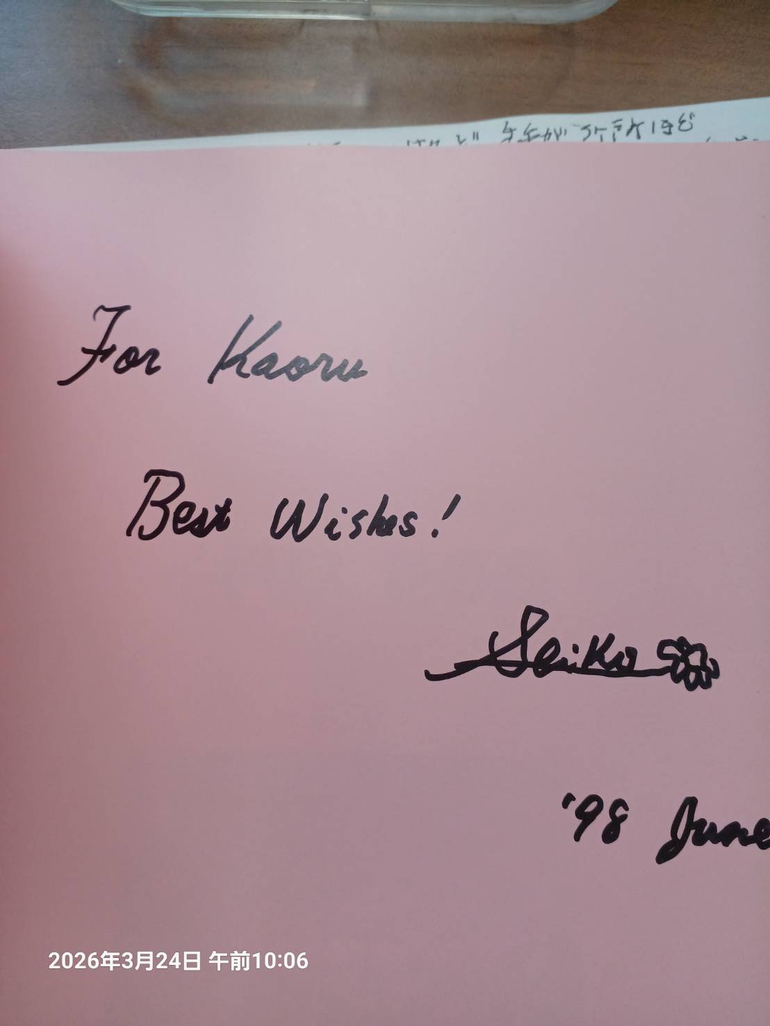 先日 施設の本 にと 一冊寄付しておいた 花の本を 借りていた方が いらっしゃる とテーブルの人に聞きました。「2冊目を何かを読みにならないかしらと 部屋の本を 選んでいました。「イギリス花の庭」当時 有名だった 広田せい子さんの 直筆のサインも入っている この本なら決められるかと パラパラとページをめくってみていました。
