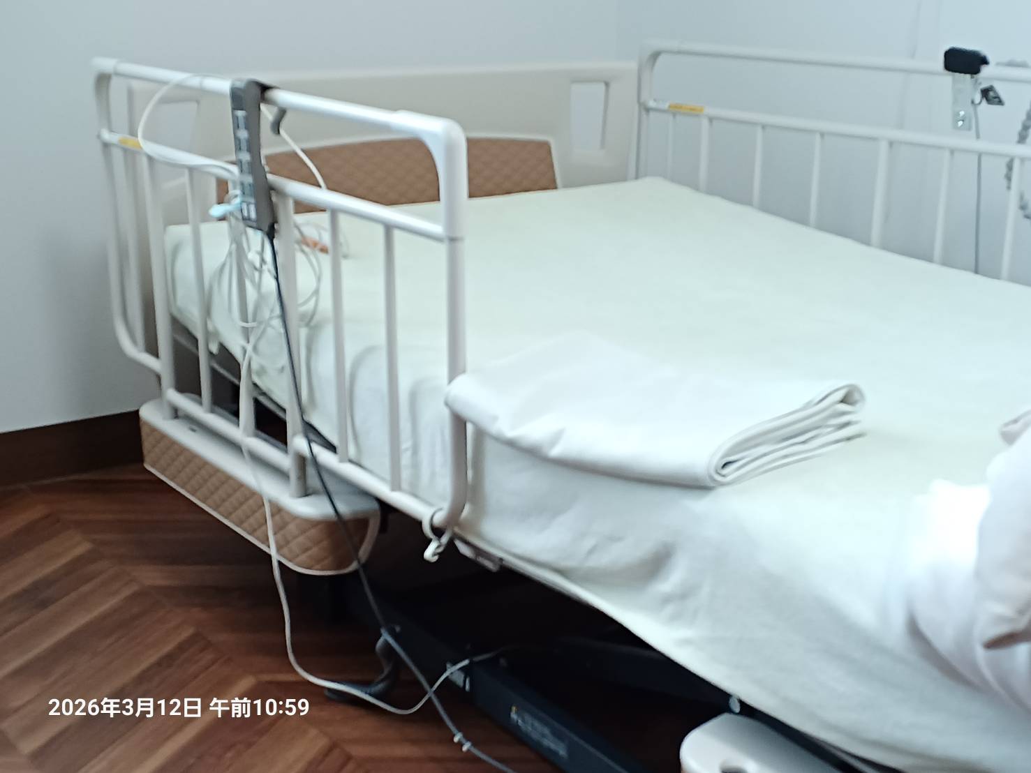 ケアマネさんの訪問と 主人の訪問が重なりました 。 色々話した後に「これだけ ベッドから 離れるようになったら ベッドの周りを 見直すときかも しれませんね」ということで 話がトントンと進みました。 ここへ来た時は 何度も言ってるように 寝たきいで これからもそうだろうと 思われていたようです。 それで 床ずれを 防ぐために エアーベッドとか 体を保つために入れるクッションなどを 使ったのですが もう いらないということになりました。 看護師さんを呼ぶコールも その当時は使えなかったので 手で触る 特殊なものが ついていました。 それも取り外すことになりました。 後日 色々なものを取り外しましたが それでも 厚みのあるベッドを 用意してもらったのに 朝起きてみたら 左膝がおかしい、痛みがあるんです。 介護の方とも色々話をしたのですが クッションがなくなったのが原因だろうということで 大急ぎで クッションを戻してもらいました。 それなりの役目ができるように 中が工夫されているのには びっくりでした。 でも今は膝はもう直って ほんの少しですがお金の支払いも 減ってよかったです。