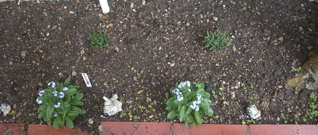 <春> 棚の下です 取り寄せたらべんだーを植えましたが、苗が小さい いつになったら咲くのやら???