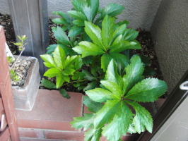 クリスマスローズの葉 紫花の方は、綺麗な葉が出ています |